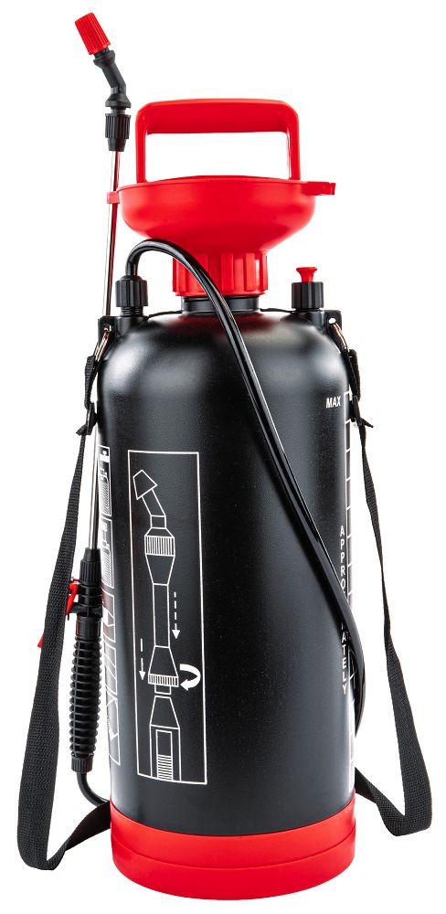 Ročna škropilnica RTOC0159, 8L | RED TECHNIC je zasnovana za nanašanje fitofarmacevtskih sredstev ali čiščenje z vodo ali detergenti. Dobro se obnese na vrtovih, v rastlinjakih, pa tudi za čiščenje doma ali na vrtovih, kar zagotavlja veliko vsestranskost uporabe. Namenjena je tudi za nanašanje fitofarmacevtskih sredstev, listnih gnojil, razkužil in detergentov ter vode.