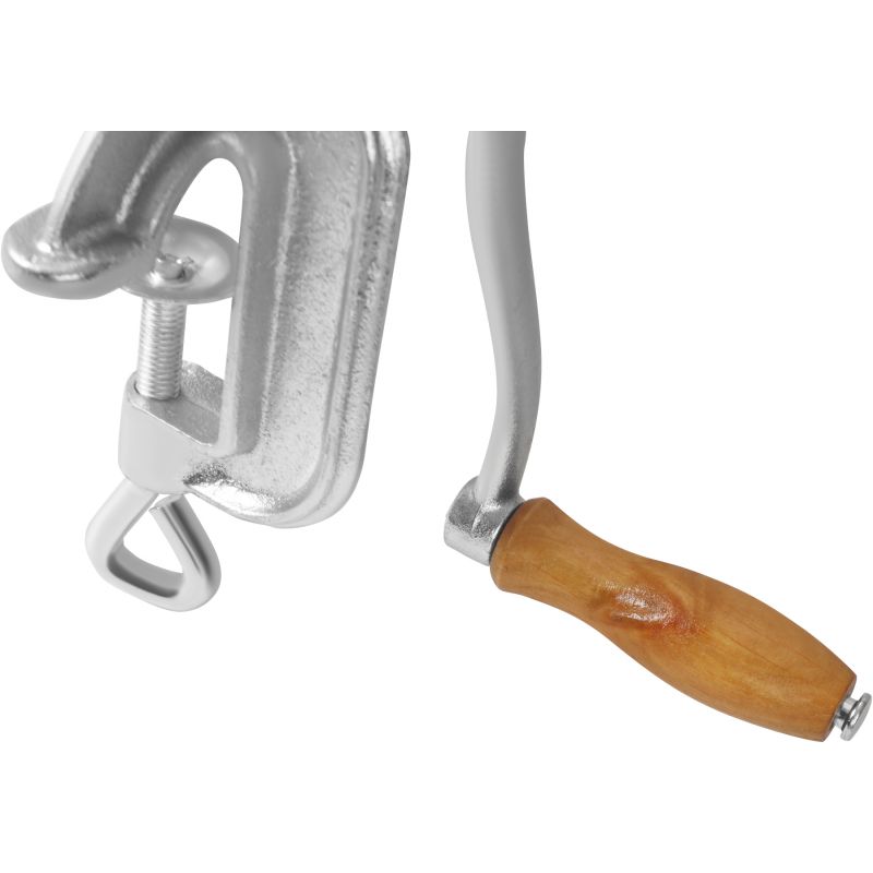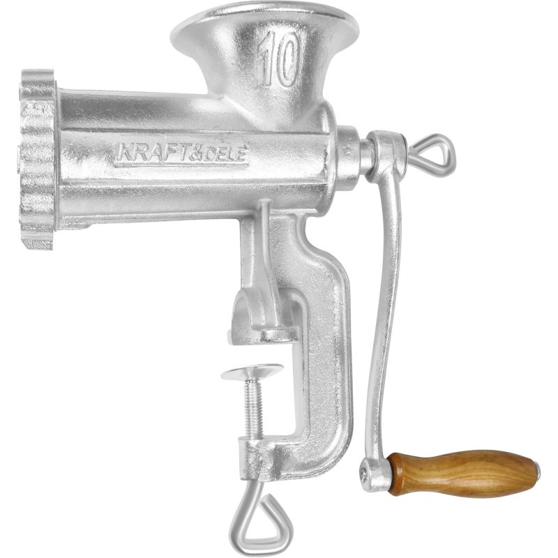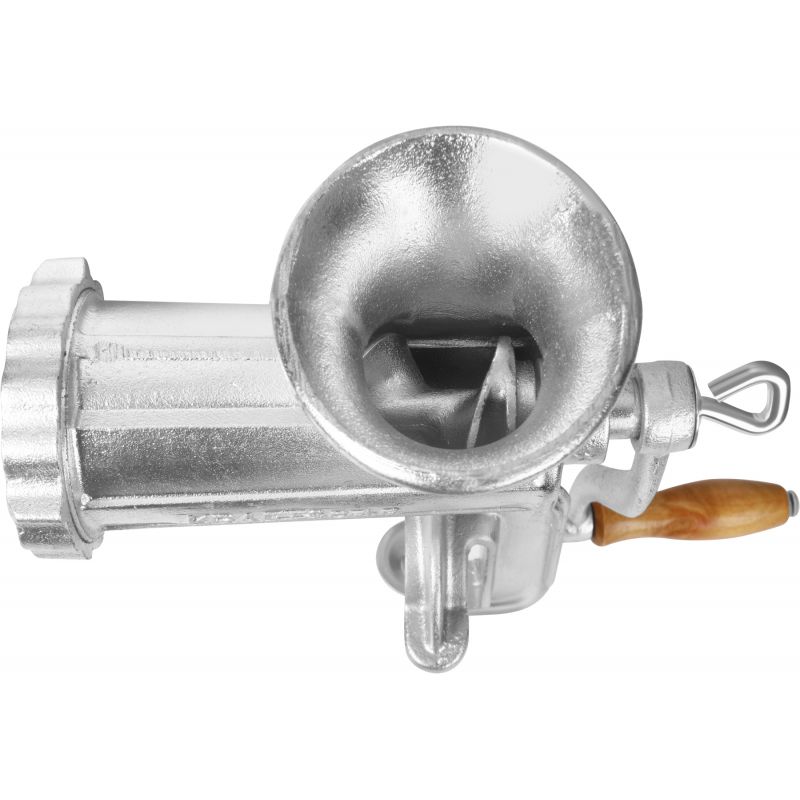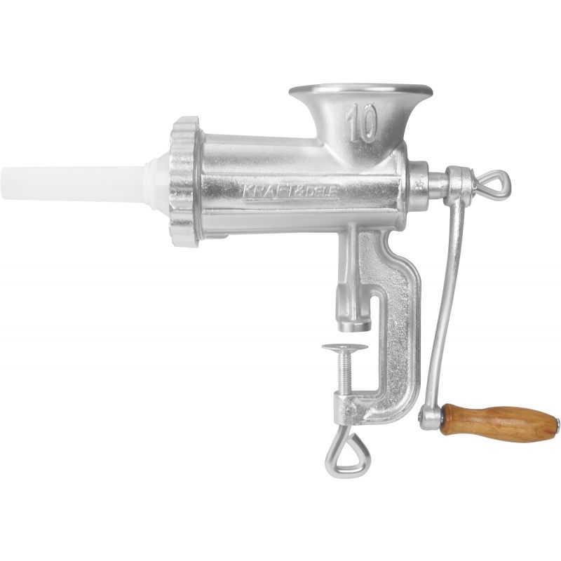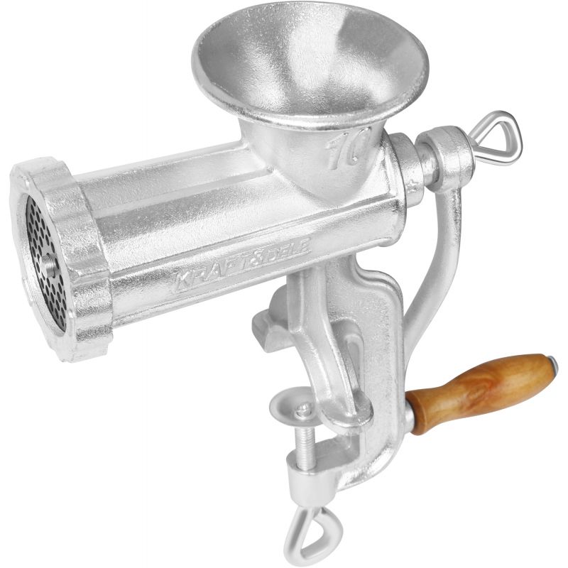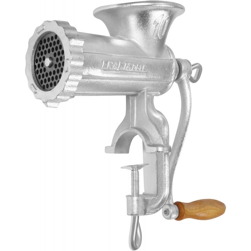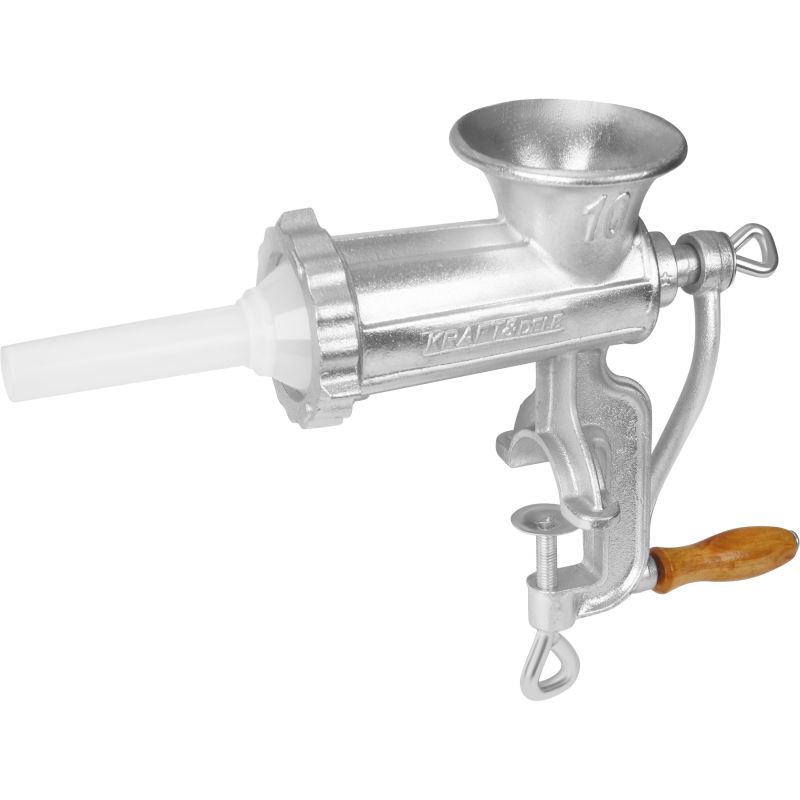 Ročni mlinček za meso, velikost 10 | KD4192 je zanesljivo in praktično orodje, zasnovano za pripravo svežega mesa, nadevov in domačih klobas. Zahvaljujoč klasični zasnovi in neodvisnosti od elektrike se bo izkazal v vsaki kuhinji. Ohišje iz pocinkane litoželezne zlitine zagotavlja vzdržljivost in odpornost proti poškodbam, udobna ročica z lesenim ročajem pa zagotavlja udobje pri uporabi.