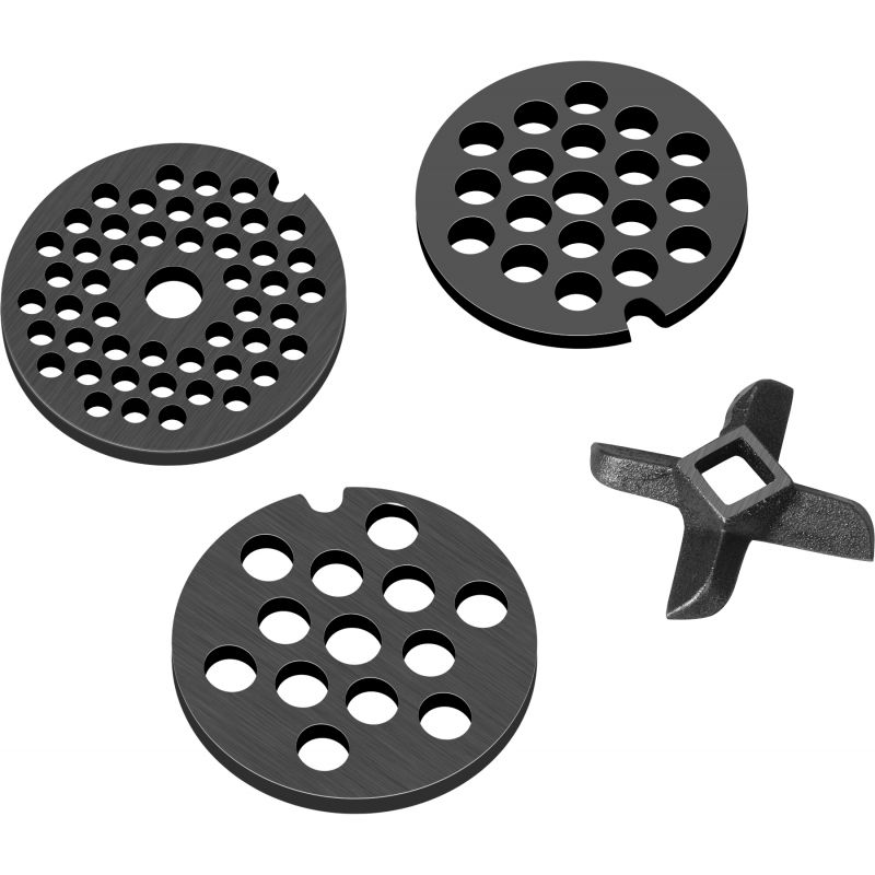 Stabilen sistem pritrditve na delovno površino omogoča varno in zanesljivo delo. Zaščitni podaljšek, ki je priložen kompletu, ščiti delovno površino pred praskami. Komplet vključuje različna sita in lijake za klobase, kar vam omogoča, da napravo prilagodite različnim namenom – od finega mletja do priprave domačih klobas.