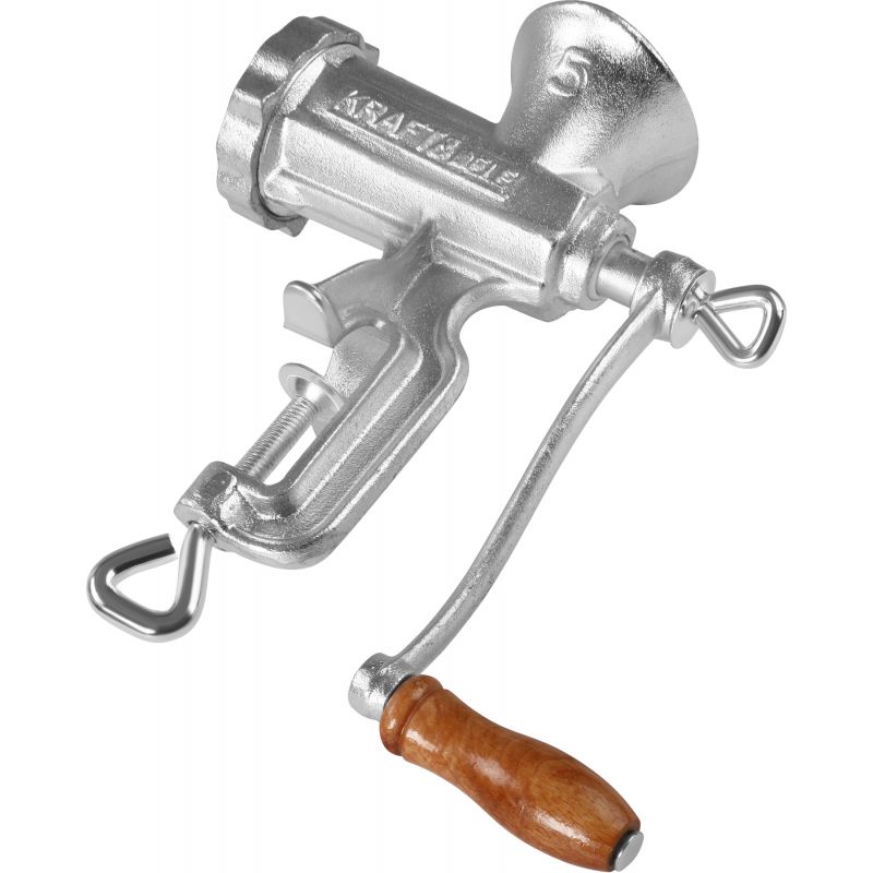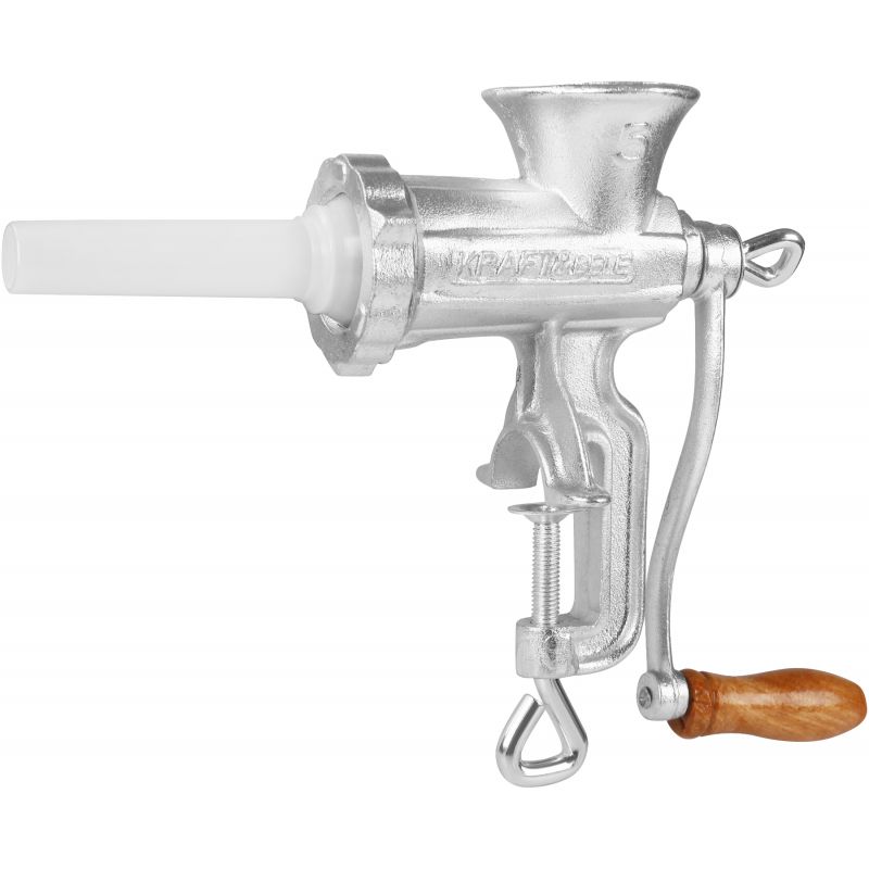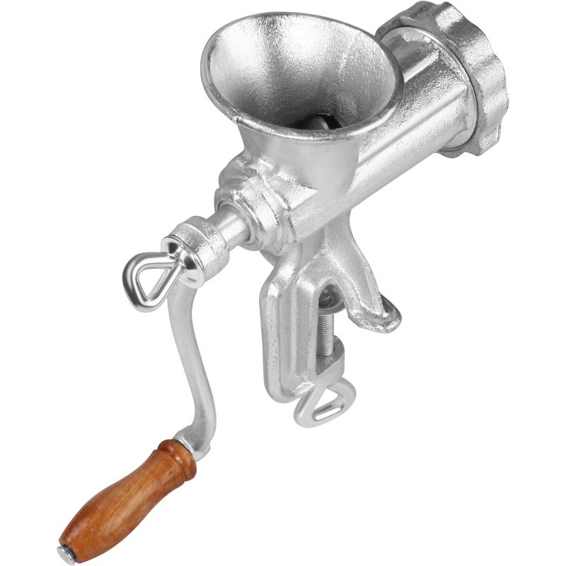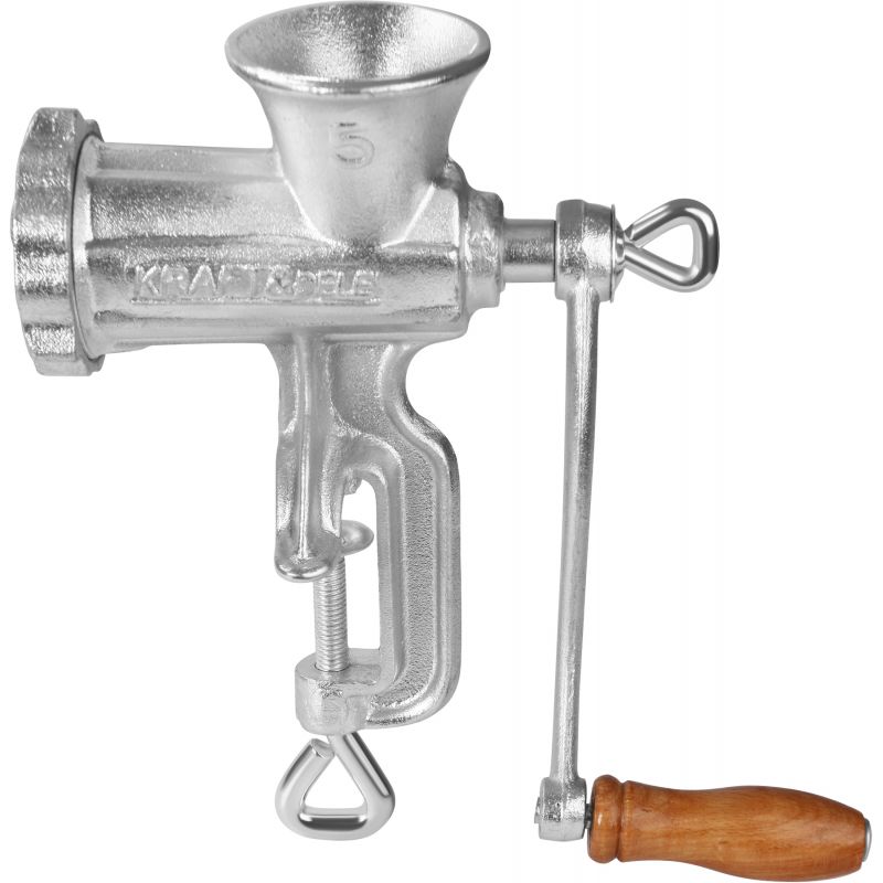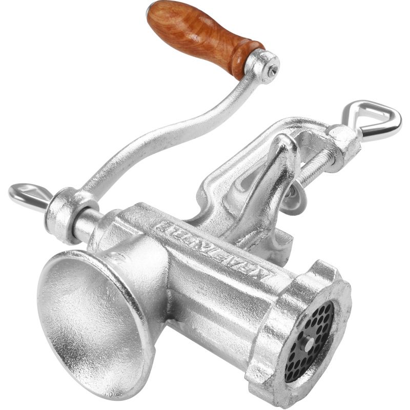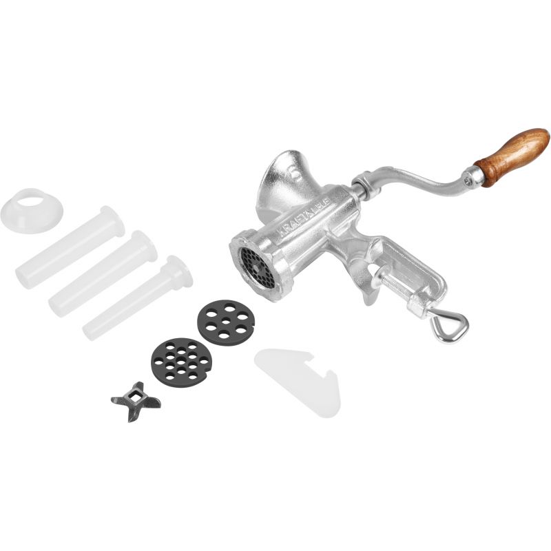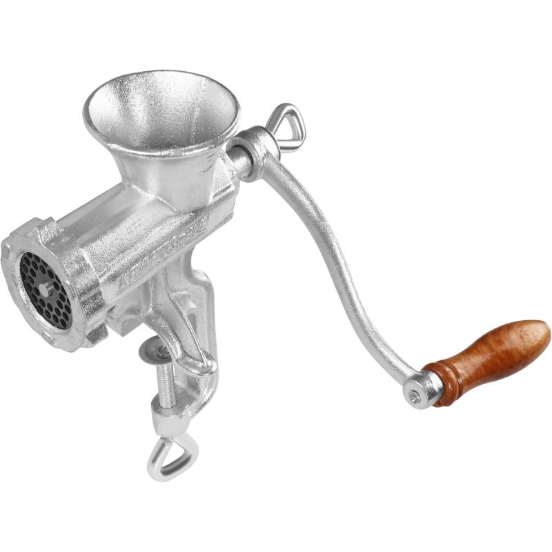 Ročni mlinček za meso, velikost 5 | KD4190 je zanesljivo in praktično orodje, zasnovano za pripravo svežega mesa, nadevov in domačih klobas. Zahvaljujoč klasični zasnovi in neodvisnosti od elektrike se bo izkazal v vsaki kuhinji. Ohišje iz pocinkane litoželezne zlitine zagotavlja vzdržljivost in odpornost proti poškodbam, udobna ročica z lesenim ročajem pa zagotavlja udobje pri uporabi.