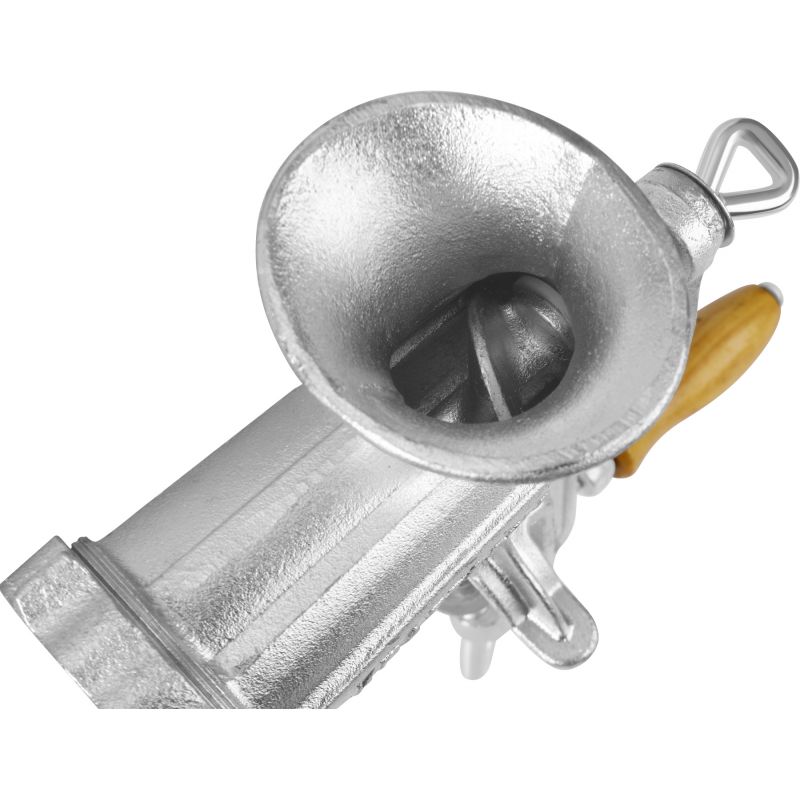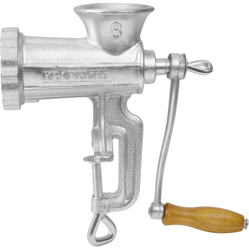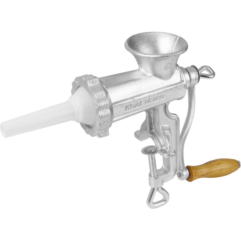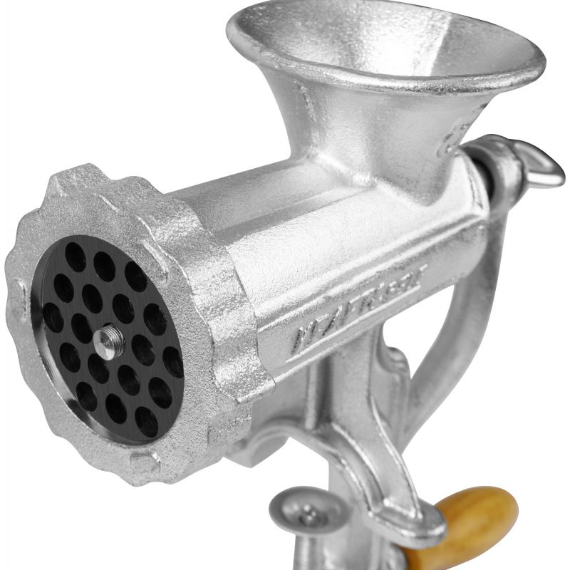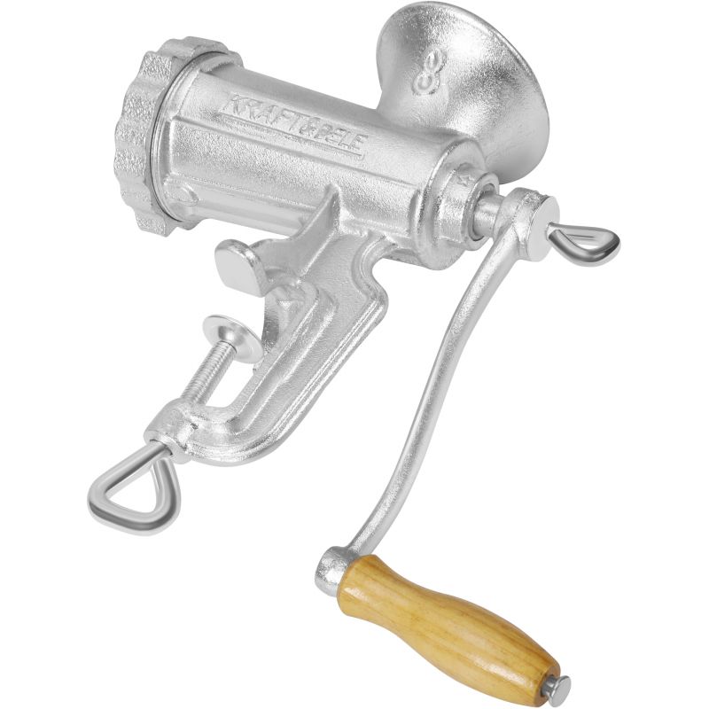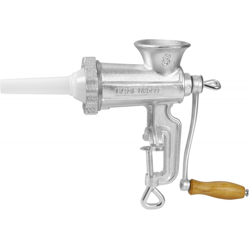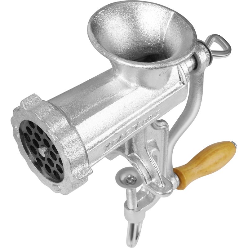 Ročni mlinček za meso, velikost 8 | KD4191 je zanesljivo in praktično orodje, zasnovano za pripravo svežega mesa, nadevov in domačih klobas. Zahvaljujoč klasični zasnovi in neodvisnosti od elektrike se bo izkazal v vsaki kuhinji. Ohišje iz pocinkane litoželezne zlitine zagotavlja vzdržljivost in odpornost proti poškodbam, udobna ročica z lesenim ročajem pa zagotavlja udobje pri uporabi.