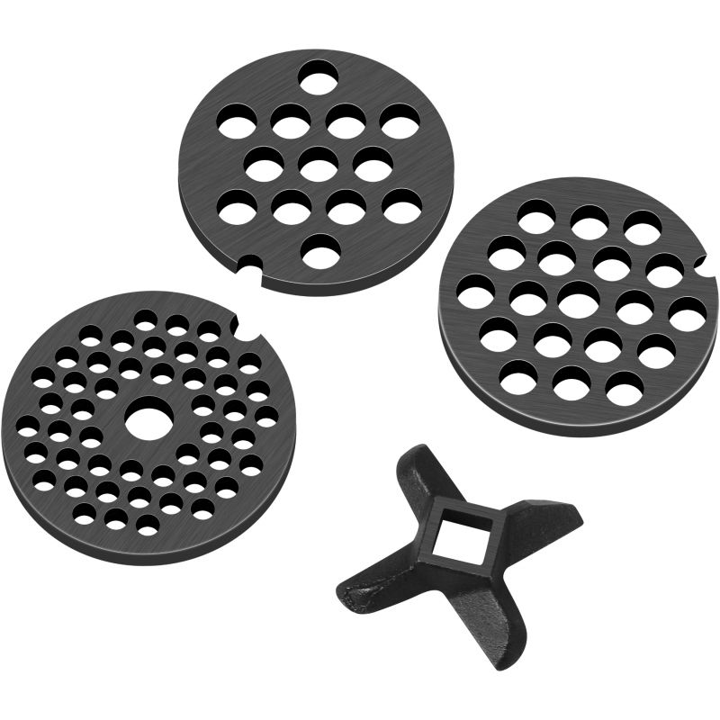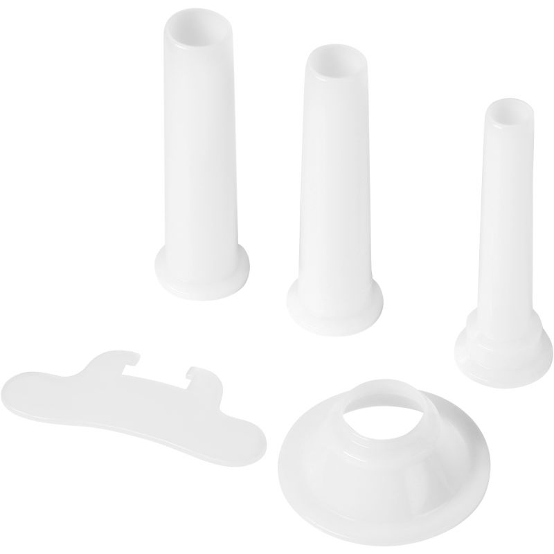 Stabilen sistem pritrditve na delovno površino omogoča varno in zanesljivo delo. Zaščitni podaljšek, ki je priložen kompletu, ščiti delovno površino pred praskami. Komplet vključuje različna sita in lijake za klobase, kar vam omogoča, da napravo prilagodite različnim namenom – od finega mletja do priprave domačih klobas.