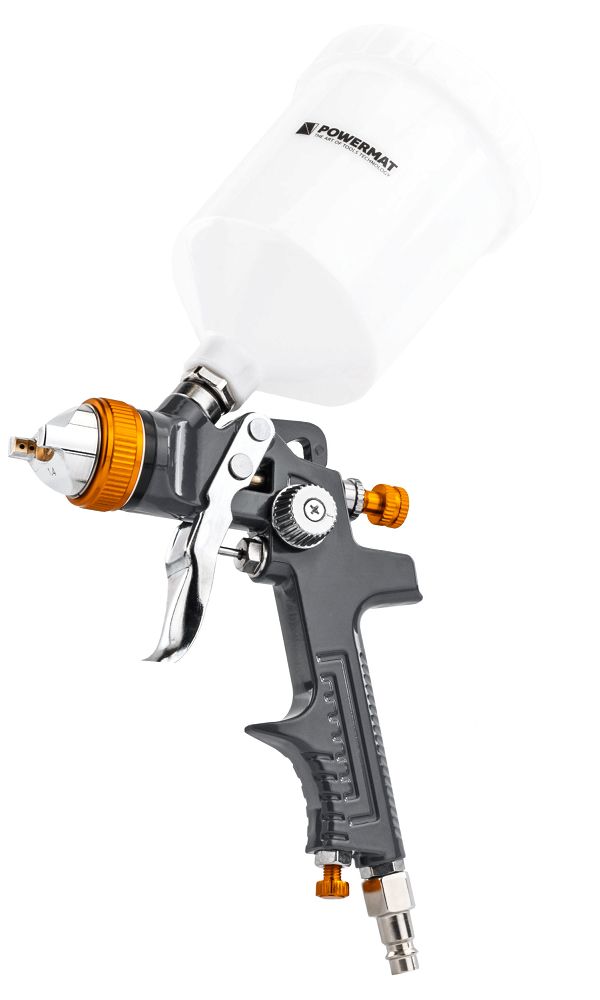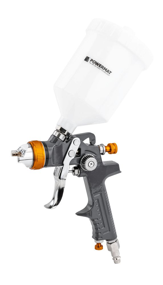 Škropilna pištola, 600 ml | PM-PDM-170T je praktično in natančno orodje, zasnovano za brizganje barv, lakov in drugih površinskih obdelav. Pištola je združljiva s številnimi vrstami premazov, kot so lazure, temeljni premazi, laki in zaščitna sredstva za les, zaradi česar je vsestransko orodje za zaključna dela.