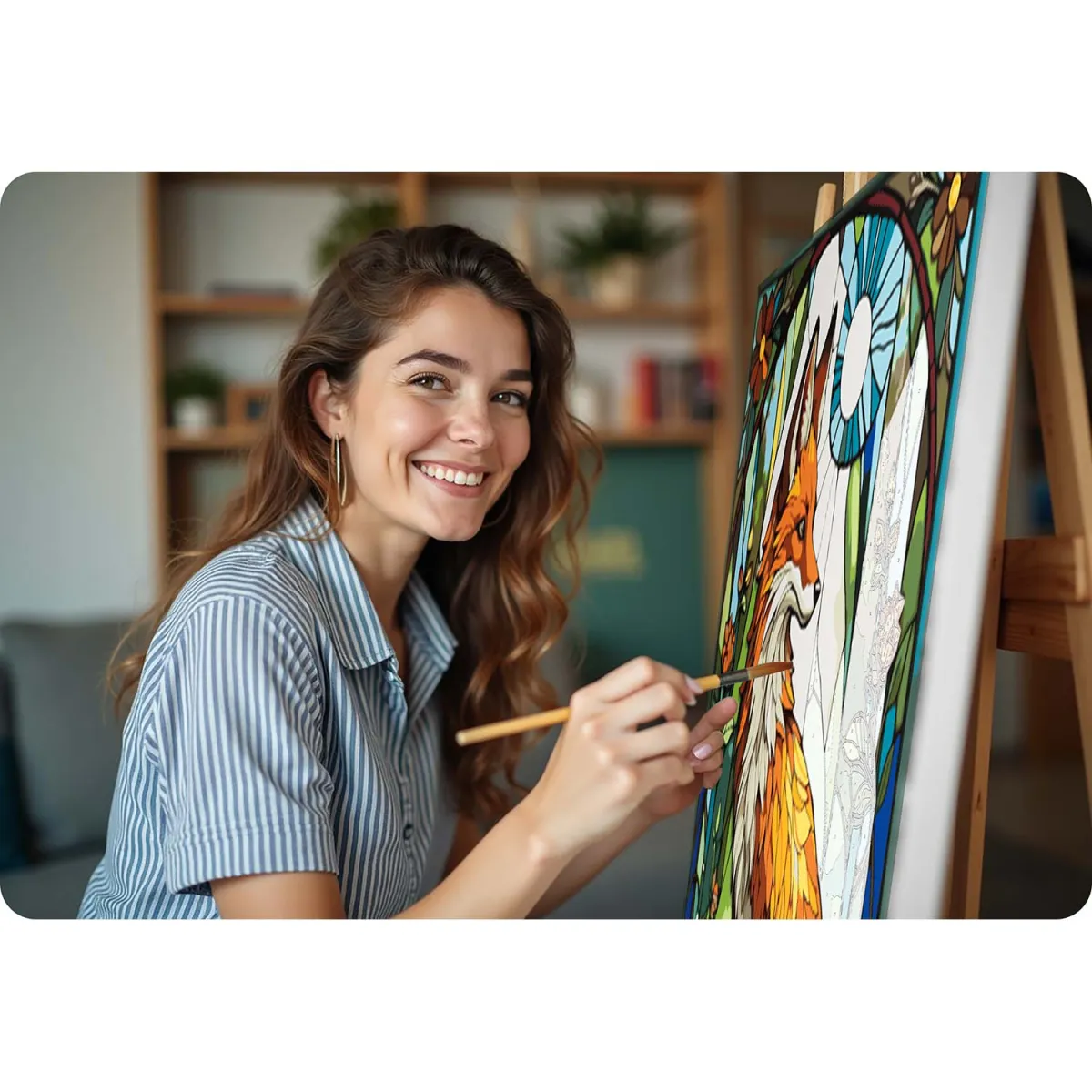 Slika po številkah, 40x50cm, lisica | Massido je komplet, ki vam omogoča, da se sprostite med izpolnjevanjem polj z barvami in ustvarjanjem lastnega umetniškega dela. Vesel, barvit vzorec je odlična izbira tako za velike kot za majhne umetnike, ki želijo odkriti veselje do slikanja. Idealno za preživljanje ustvarjalnega časa z družino in ustvarjanje edinstvenega umetniškega dela, polnega barv!