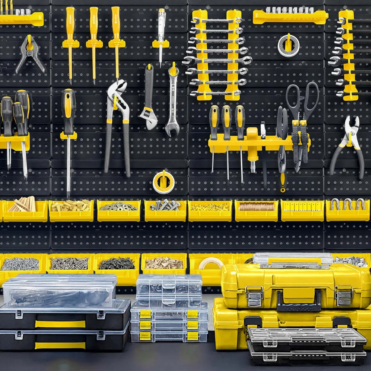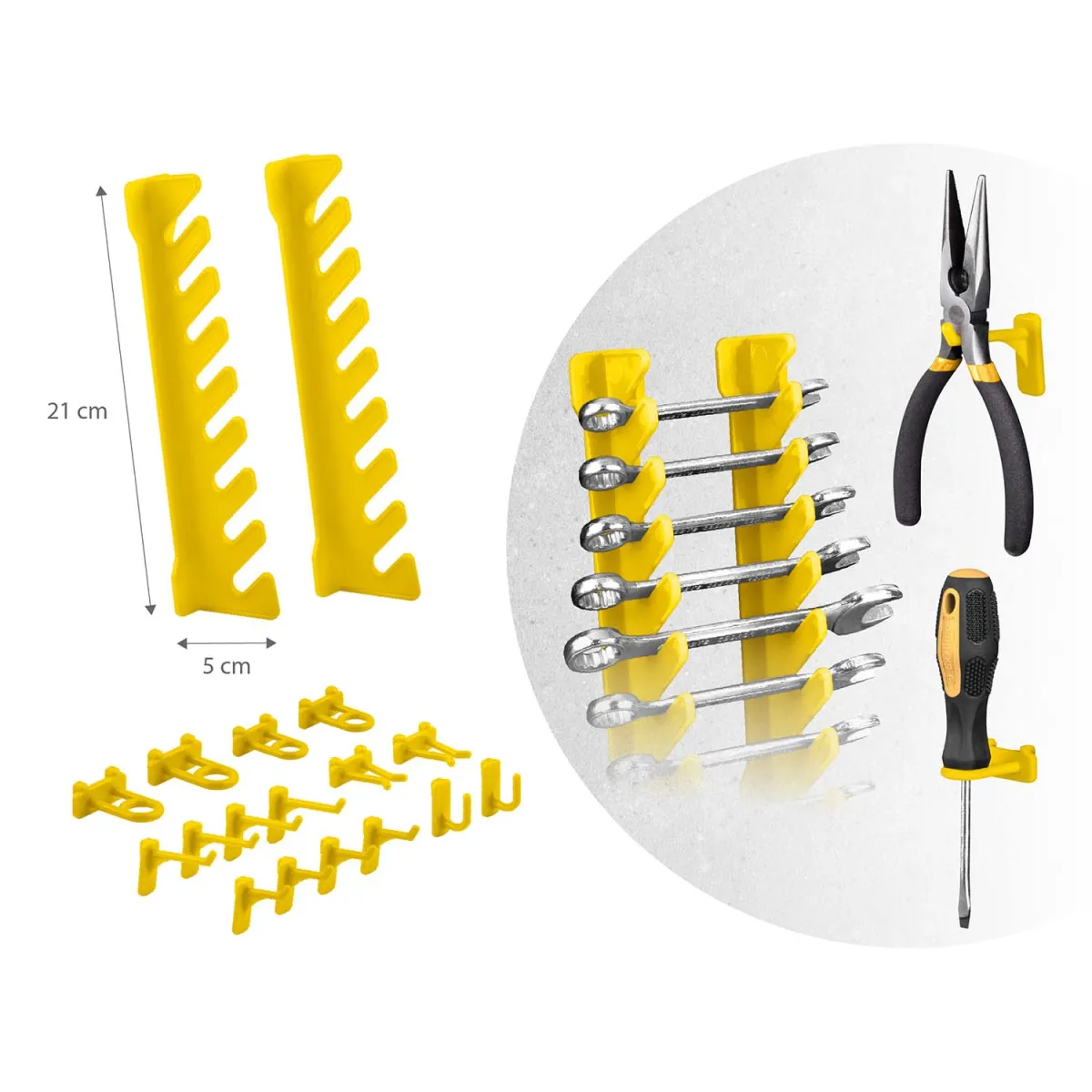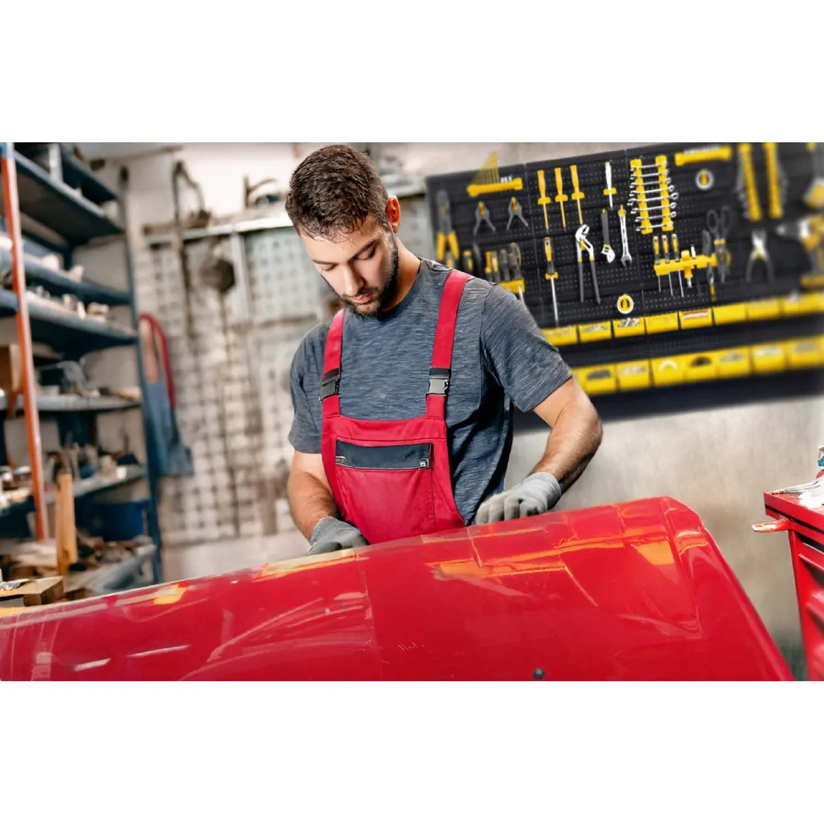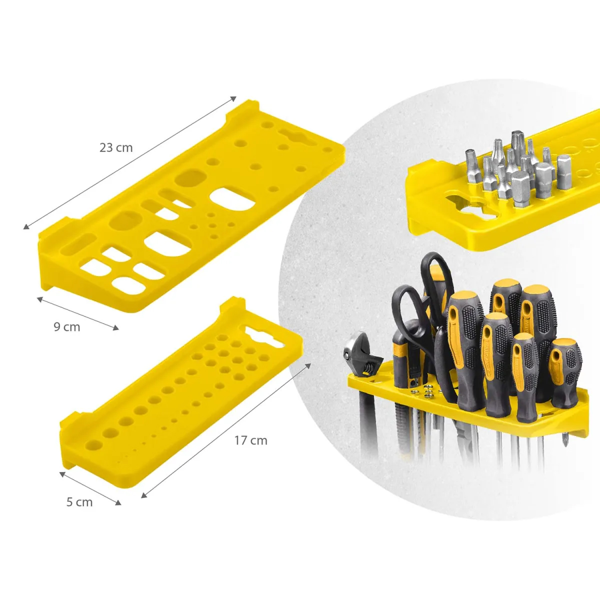 Stena za orodje za delavnico HM-580, 128x76cm, rumena | Humberg je praktična organizacijska plošča, ki vam bo pomagala ohranjati vašo delavnico organizirano. Komplet vsebuje do 54 dodatkov (kivete, kavlji, police, nosilci), ki jih lahko uporabnik prosto postavi glede na svoje potrebe, kar omogoča popolno, prilagojeno zasnovo delovnega prostora.