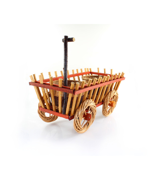 Stojalo za cvetlične lončke, 80x45x35 cm | voziček zagotavlja prostor za shranjevanje cvetličnih lončkov in hkrati stilsko dopolnjuje vrt, teraso in notranjost. Izdelano je iz naravne vrbove preje, zaradi česar je videti naravno in se prilega različnim bivalnim slogom – od rustikalnega do modernega. Oblika vozička daje celotni dekoraciji zanimiv vizualni učinek in omogoča razstavljanje cvetja na nekonvencionalen način. Konstrukcija zagotavlja stabilno shranjevanje cvetličnih lončkov in enostavno postavitev, na primer na gredico, teraso ali pri vhodu v hišo. Ta vrsta dekorativnega vozička se uporablja predvsem za aranžiranje in razstavljanje rastlin, s čimer izboljša njihov videz in celotno vzdušje prostora.