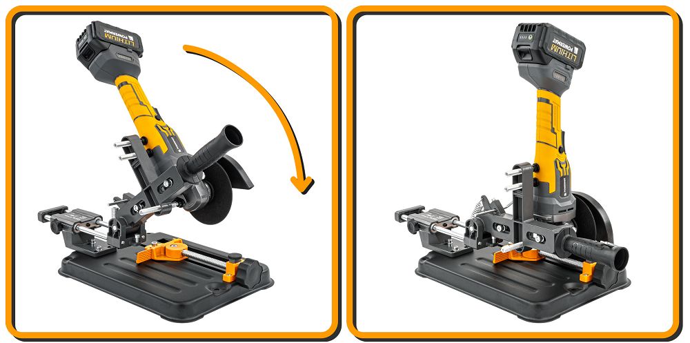 Stojalo za kotni brusilnik, 125 mm | PM-SDSP-330T je stabilen in robusten pripomoček, ki zagotavlja varno držanje orodja in natančno horizontalno brušenje. Naprava je združljiva s kotnimi brusilniki, opremljenimi z diski z največjim premerom 125 mm. To omogoča učinkovito in hitro rezanje različnih materialov ob hkratnem ohranjanju visoke natančnosti.