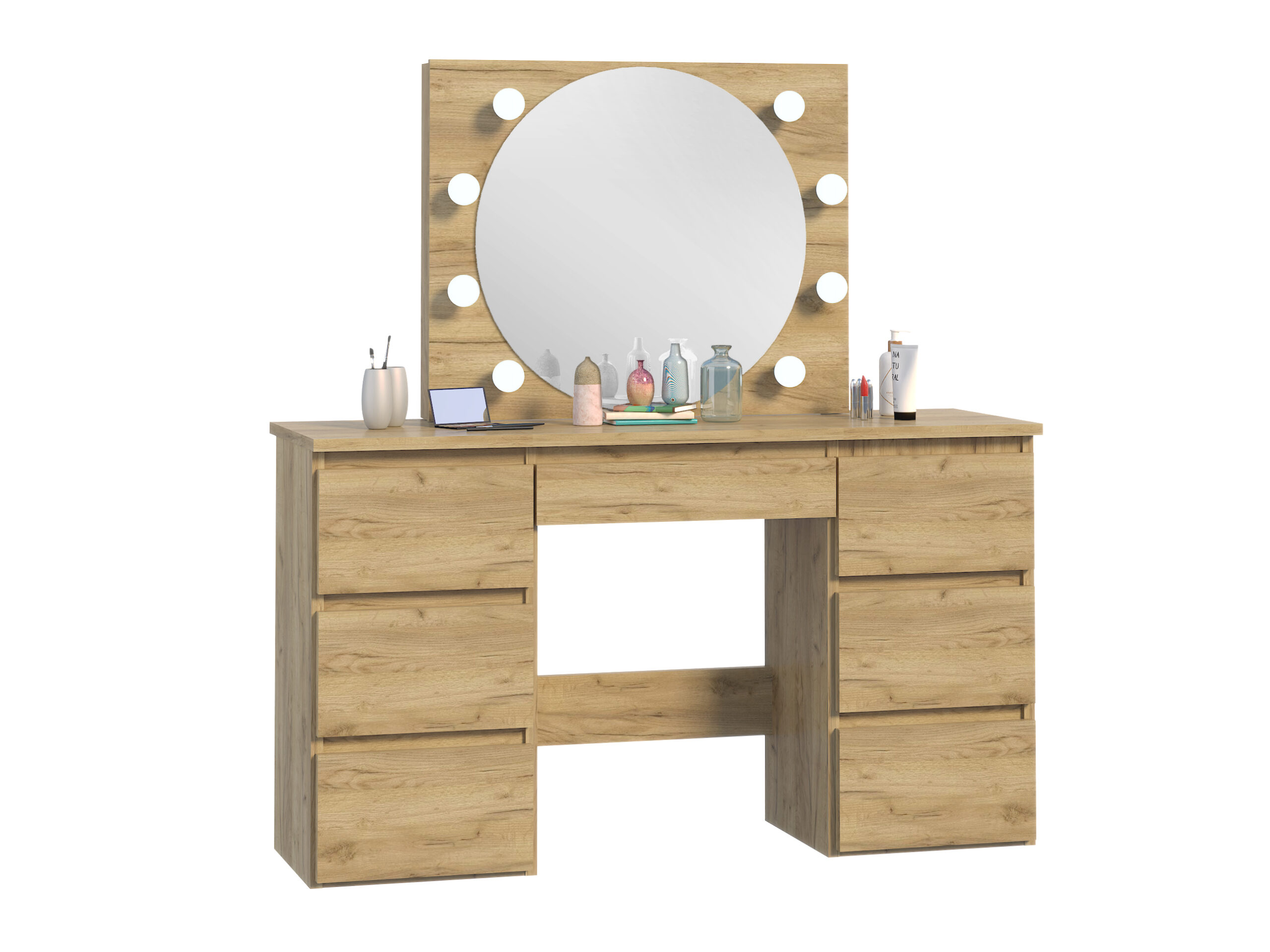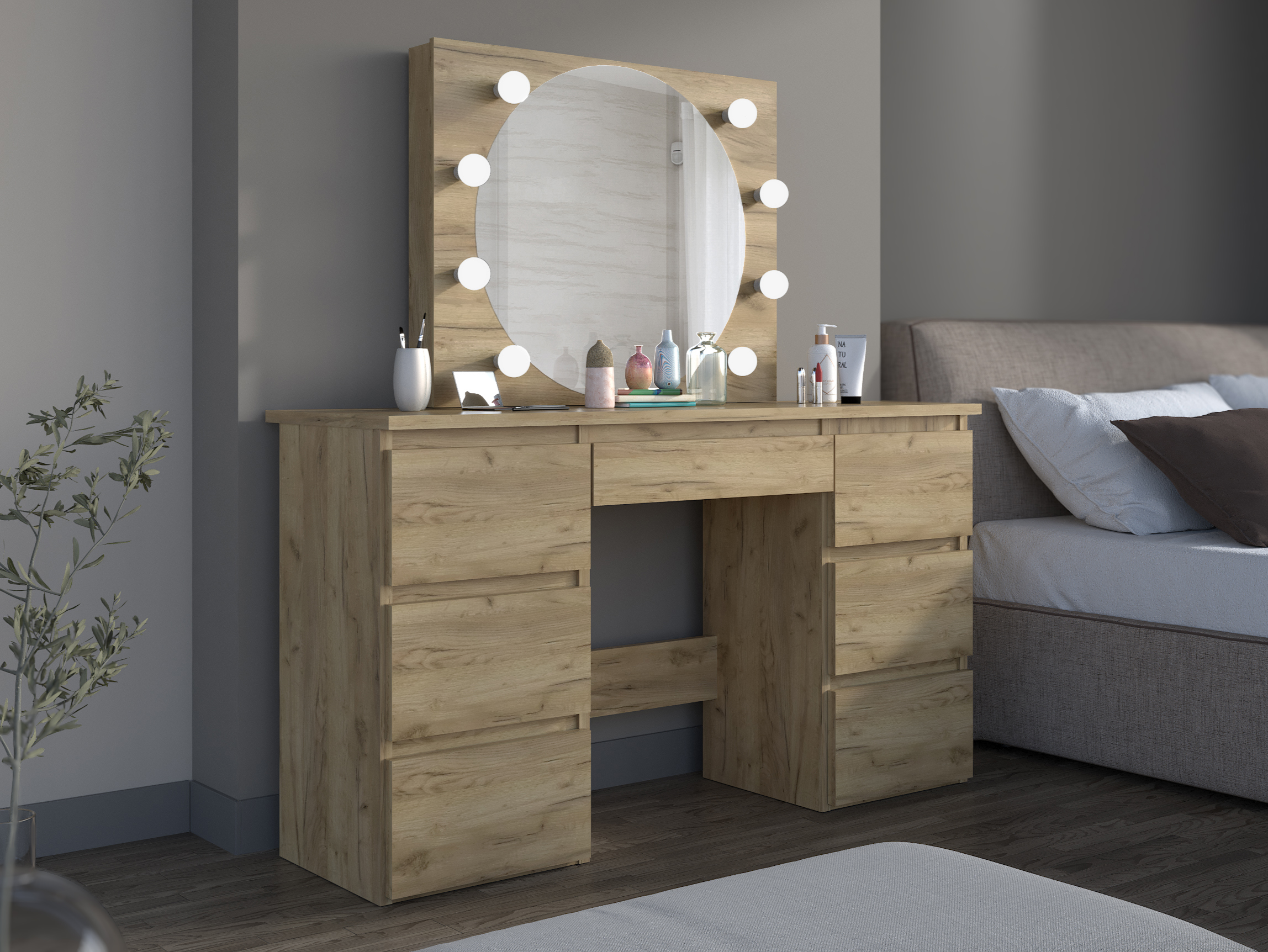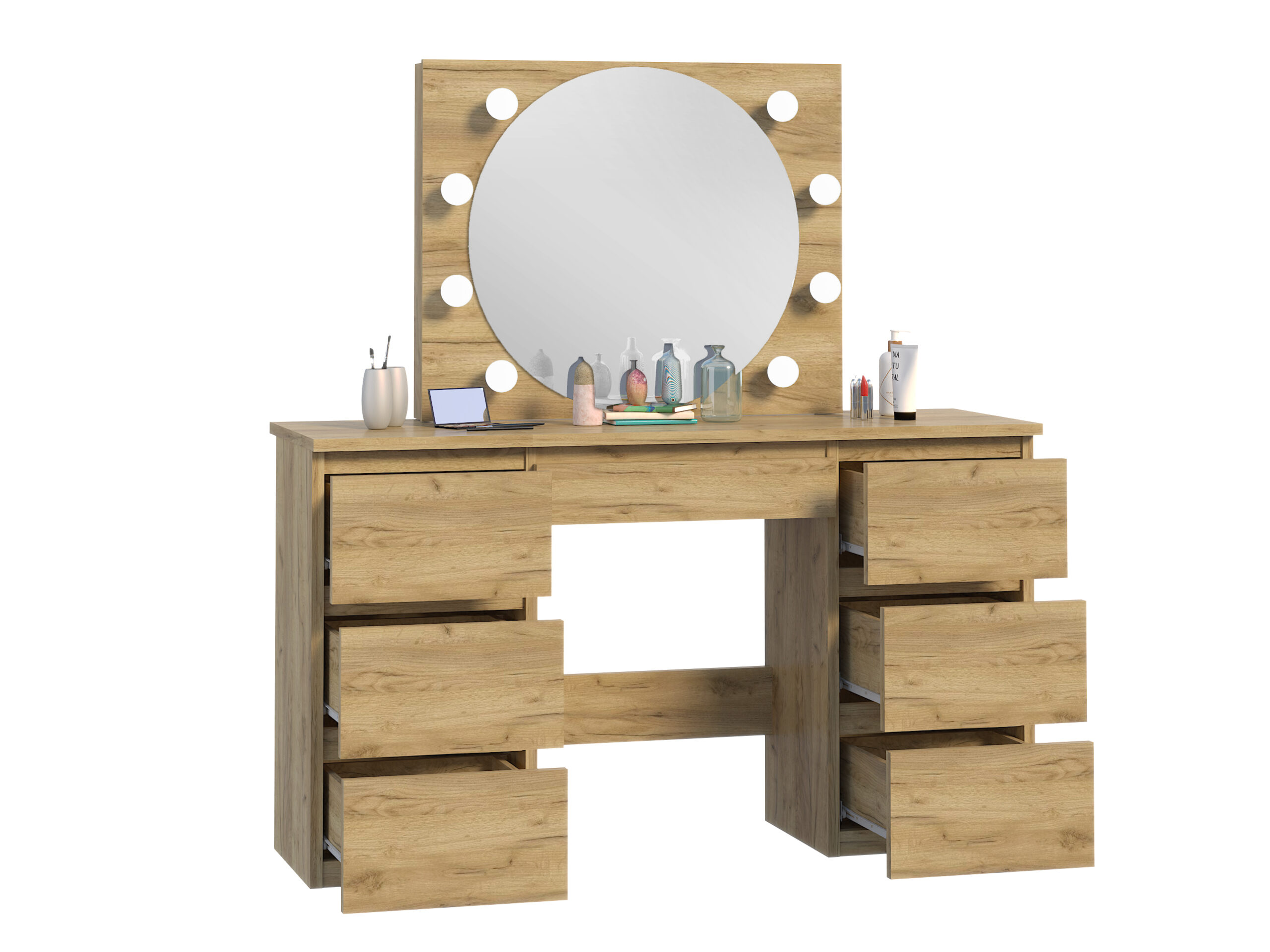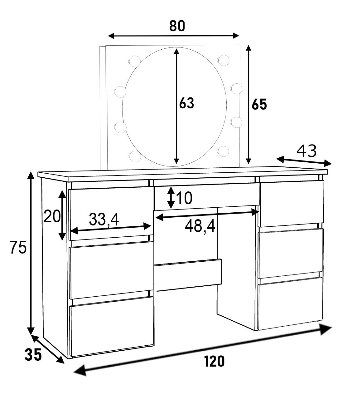 Ta toaletna mizica vam nudi tudi velik prostor s 6 predali, kamor lahko skrijete celotno zbirko kozmetike in dodatkov – tako da jih imate vedno pri roki in v organiziranem sistemu. Veliko ogledalo vam bo pomagalo opaziti tudi najmanjšo lepotno napako.