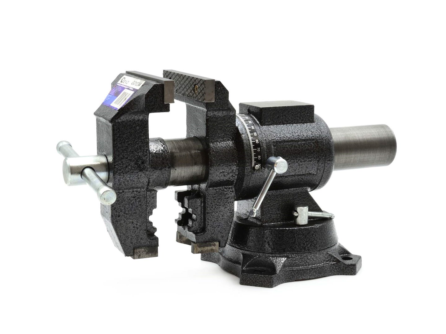 Večfunkcijski primež, 100 mm, 4″ | GEKO je univerzalno vpenjalno orodje za delavnice s 360° vrtenjem za različna dela v domačih in profesionalnih delavnicah. Primež je idealen za uporabo v ključavničarskih delavnicah, splošnih mehaničnih delavnicah itd. Kaljene čeljusti primeža imajo prečne zareze, ki zagotavljajo varno držanje katerega koli predmeta v primežu.