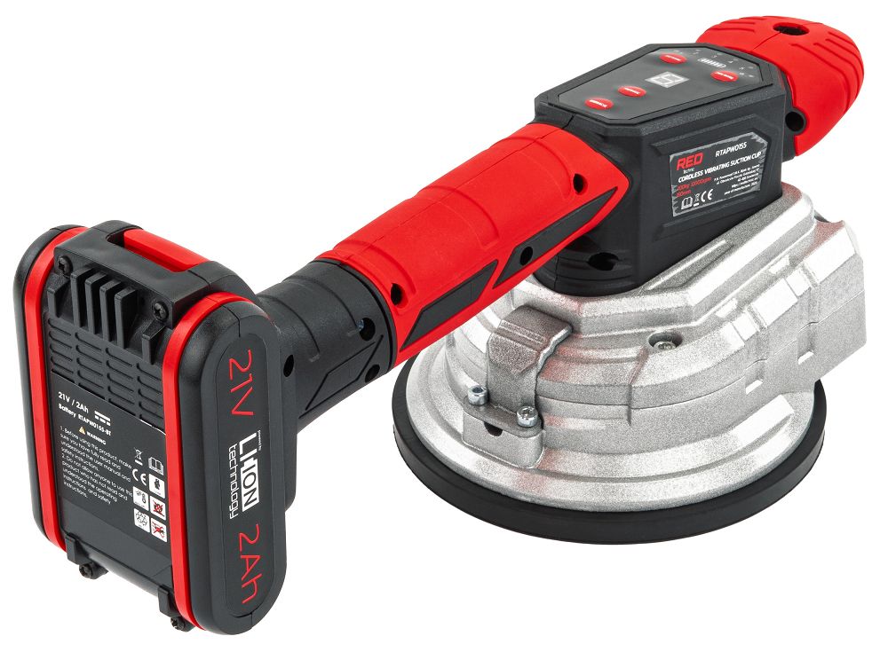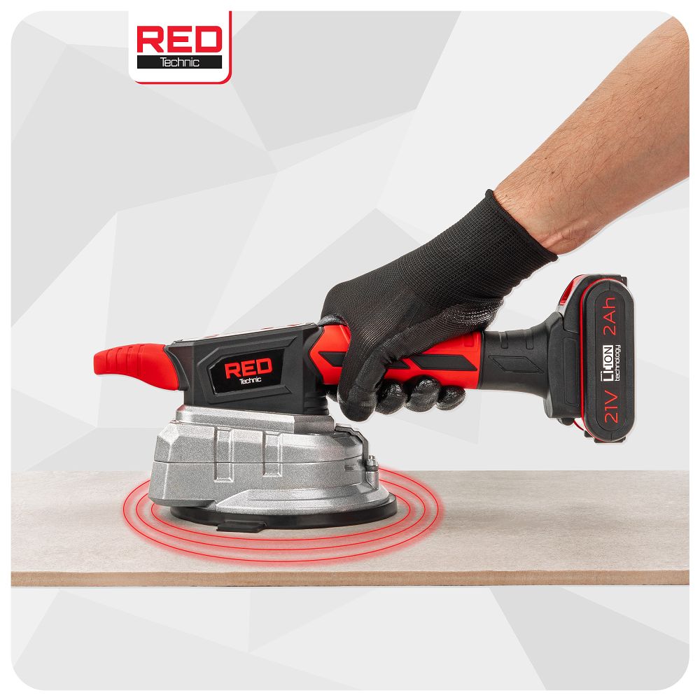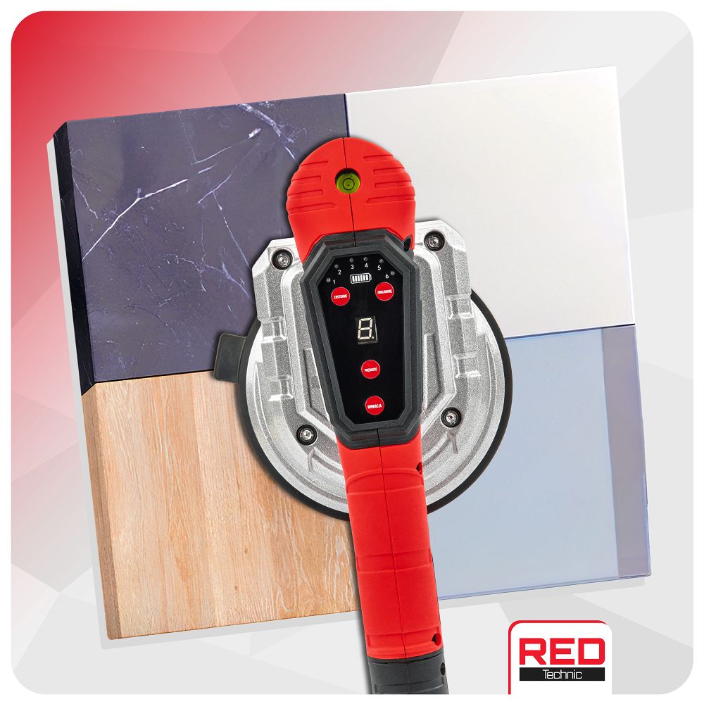 Vibracijski prisesek za ploščice RTAPW0155, 21V | RED TECHNIC ponuja sesalno silo do 100 kg z nastavljivimi vibracijami za natančno pozicioniranje ploščic. Prisesek je idealen za polaganje ploščic, steklarsko industrijo, gradbeništvo in tesarstvo. Zasnovan je za premikanje in polaganje gladkih površin – od ploščic in stekla do laminatnih plošč – je nepogrešljiv pomočnik tudi za profesionalce.