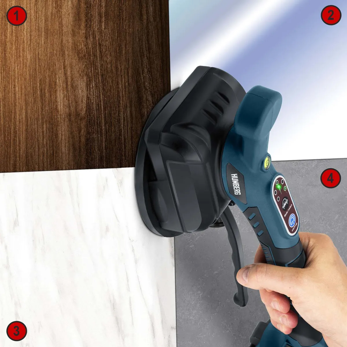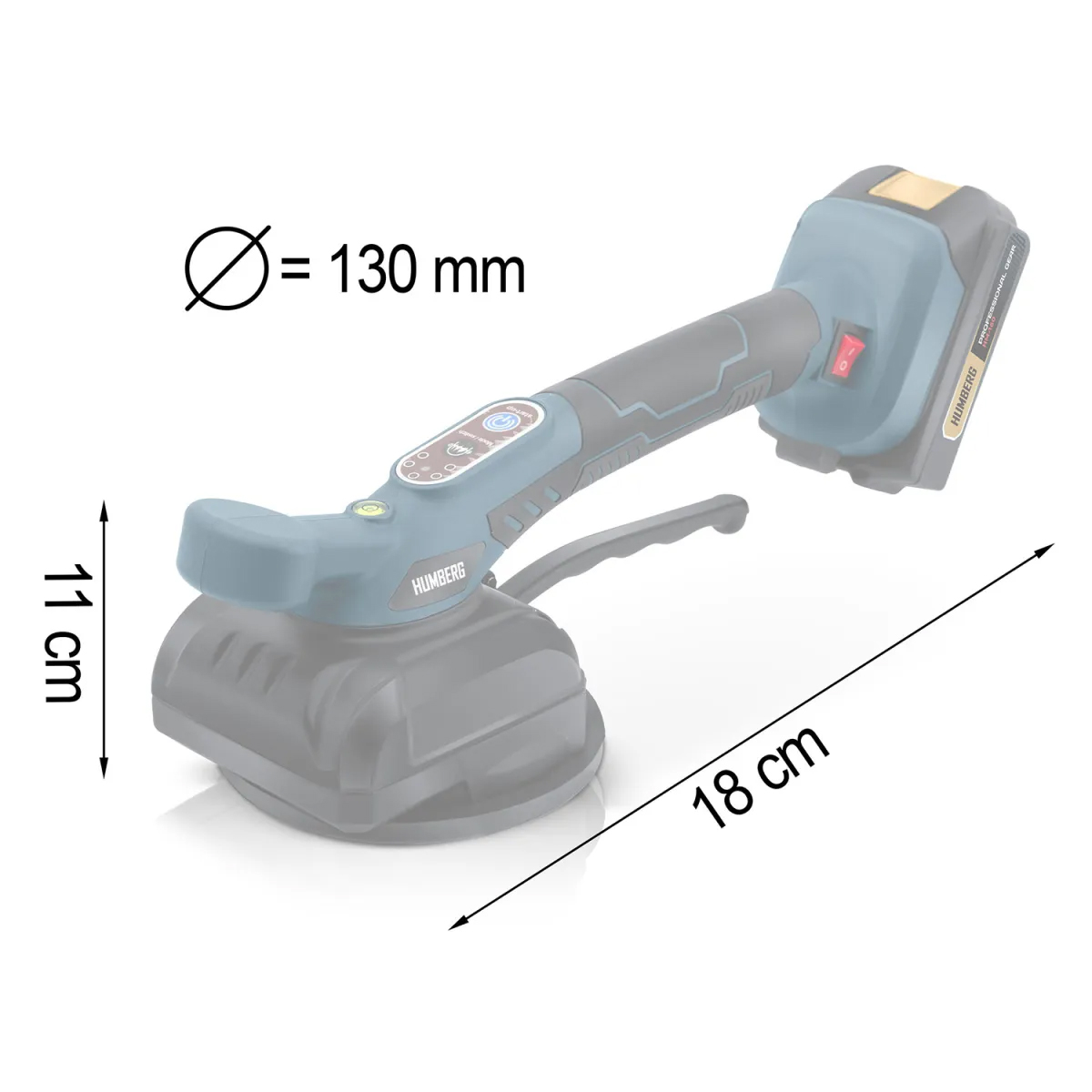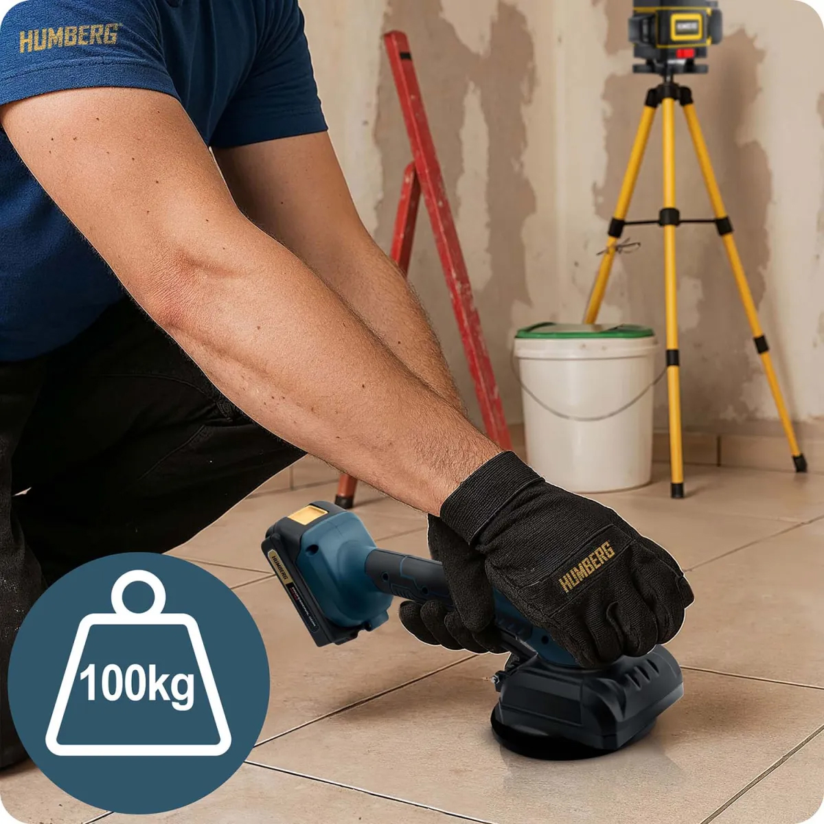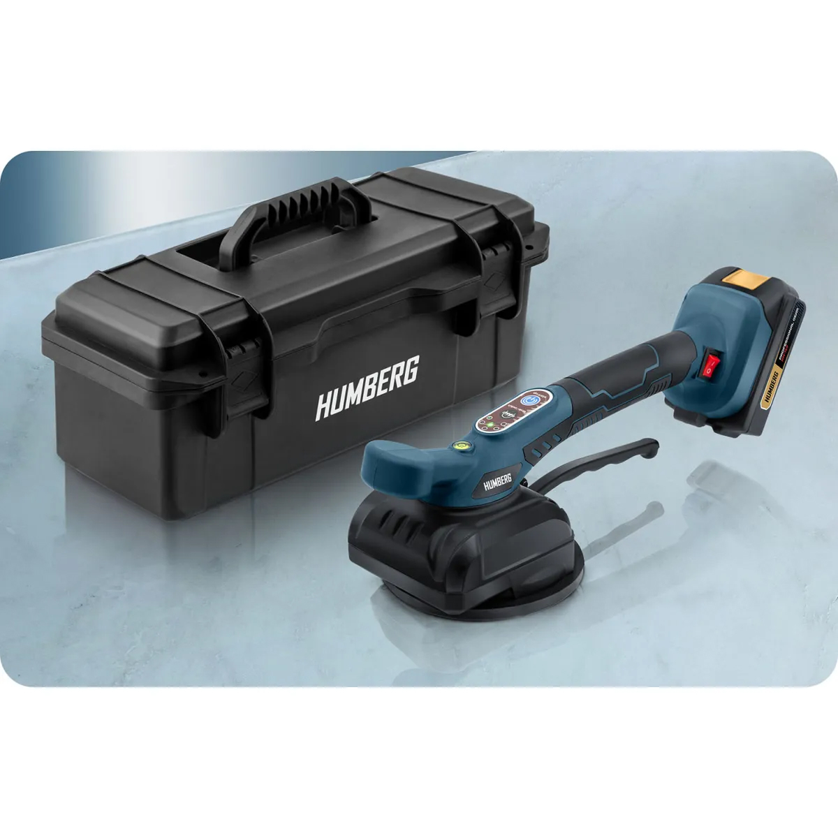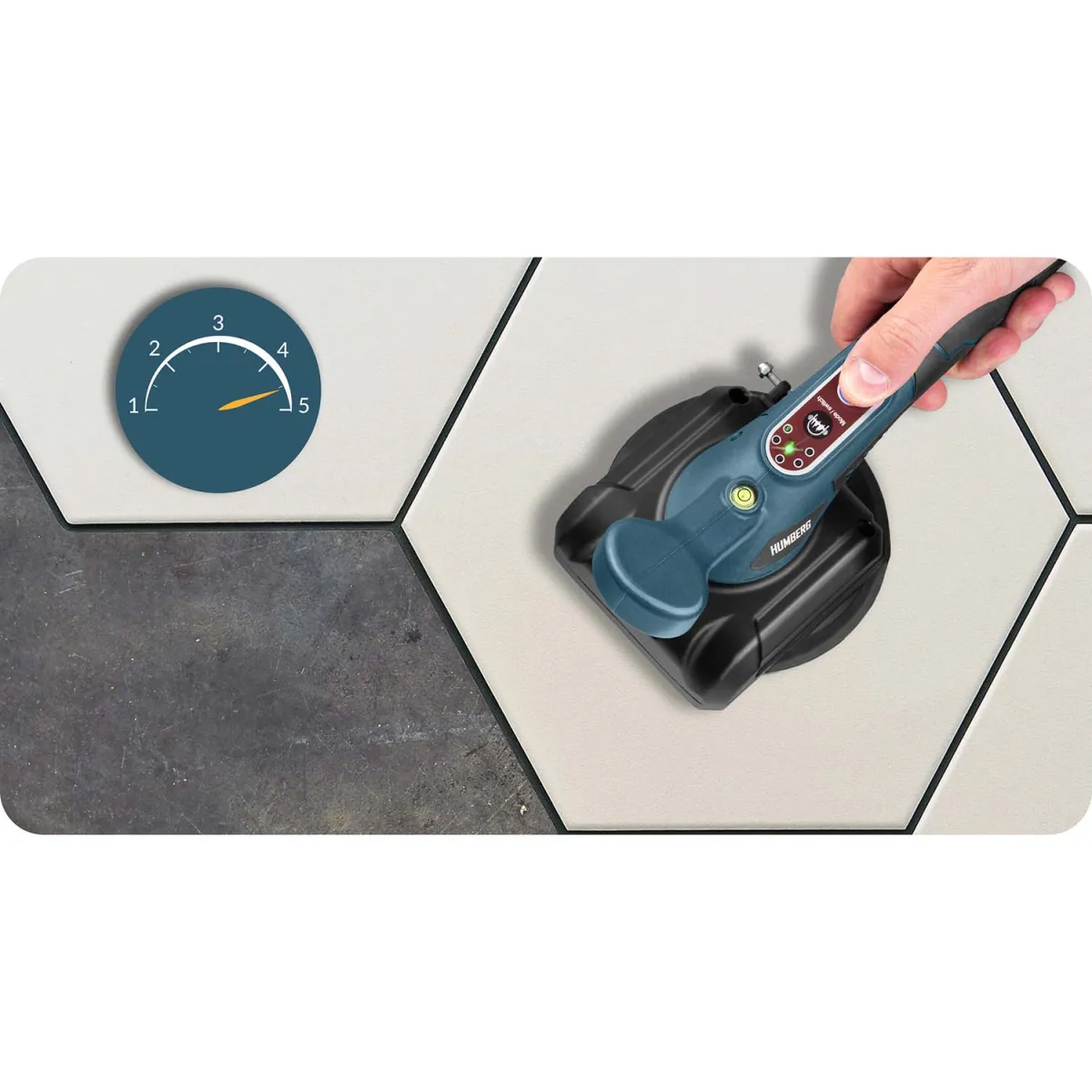 Vibracijski vakuumski prisesek za ploščice HM-160, 100 kg | Humberg je zmogljivo in zanesljivo orodje, zasnovano za varno rokovanje s ploščicami. Prisesek ima pet nastavljenih stopenj vibracij, ki pomagajo enakomerno porazdeliti lepilo pod ploščico in odpraviti zračne mehurčke – rezultat je natančnejša namestitev in daljša življenjska doba namestitve.