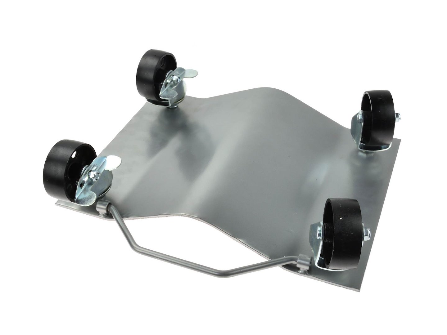 Vozič za avtomobilska kolesa, 680 kg, 2 kosa | GEKO je primeren za vsak avtoservis, primeren je za premikanje vozil v delavnici ali garaži. Vsak voziček ima jekleno ohišje, ploščad s protizdrsno obdelavo in štiri vrtljiva kolesa s premerom 76 mm, od katerih sta dve opremljeni z mehanizmom parkirne zavore, ki zagotavlja stabilnost med stanjem.