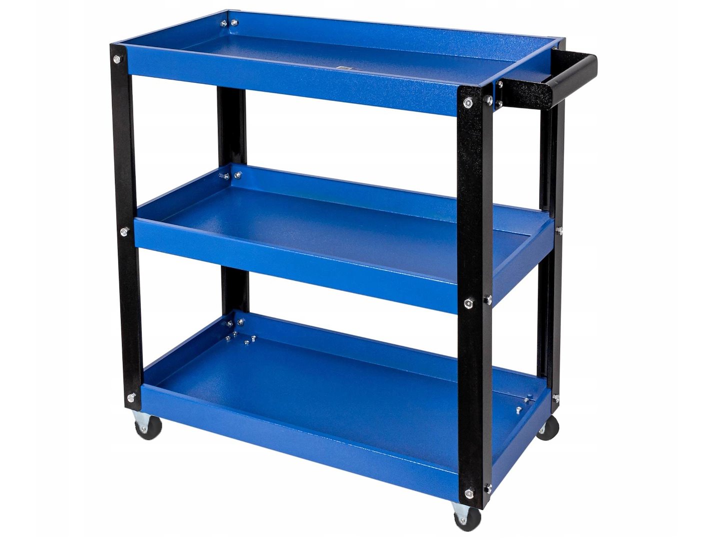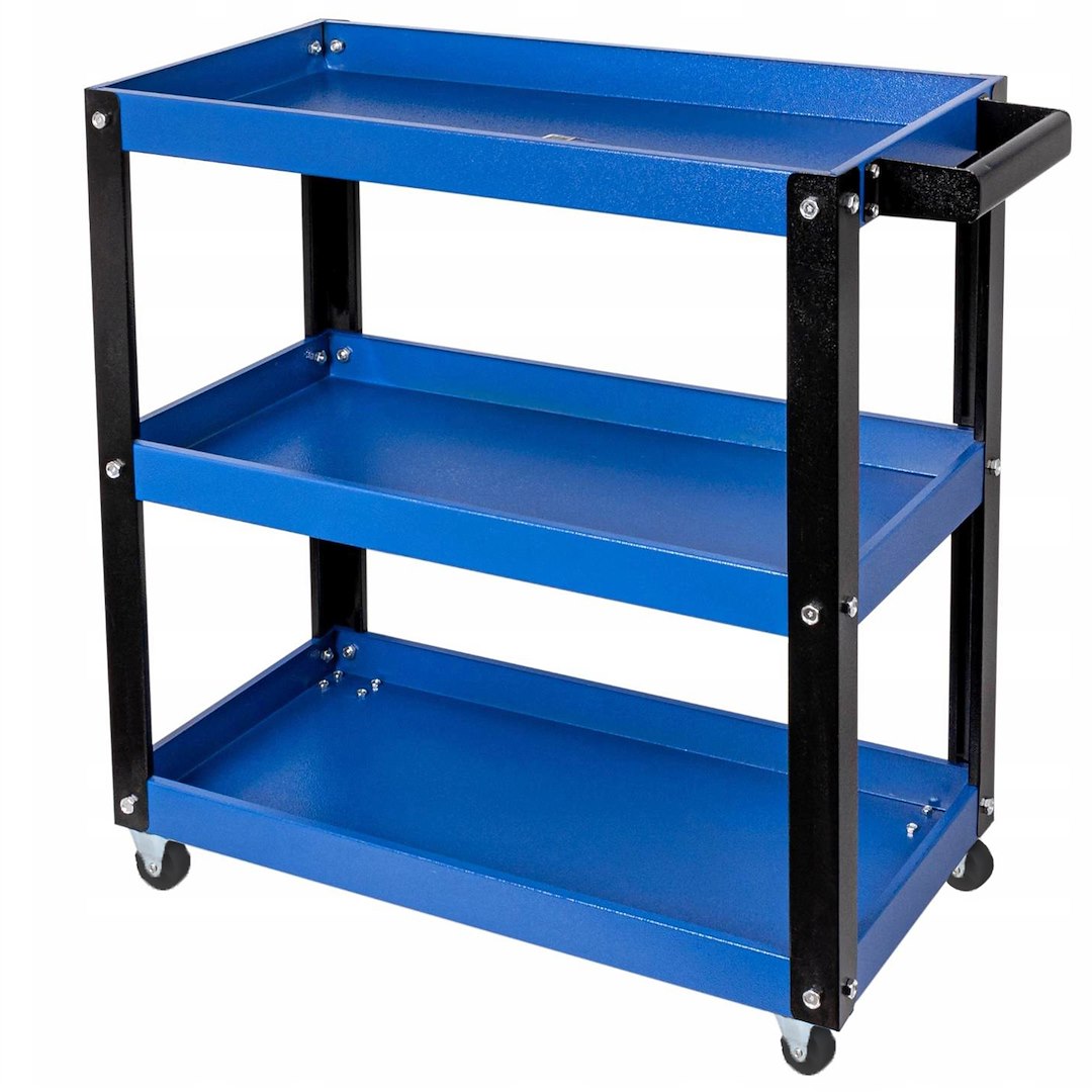 Vozič za delavnico, 3 police, 150 kg | GEKO omogoča praktično organizacijo in enostavno premikanje orodja in materialov v delavnici, garaži ali servisu. Voziček ima ergonomski ročaj na vijak za lažji transport. Opremljen je s tremi prostornimi policami. Poleg tega ima 4 kolesa, od katerih sta 2 vrtljivi z zavorami.