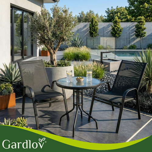 Vrtni stoli, 2 kosa, črni | Gardlov so praktična in udobna rešitev za sedenje na balkonu, terasi ali vrtu, primerna za vsakodnevno uporabo. Trdna kovinska konstrukcija s prašnim premazom zagotavlja stabilnost in odpornost proti koroziji, medtem ko se zračni PVC sedež prilagodi telesu in poveča udobje pri sedenju.
