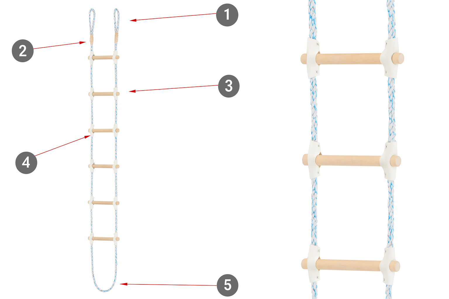 Za povečanje vzdržljivosti in varnosti so bili na obeh koncih vsake prečke uporabljeni ščitniki (prevleke) iz eko usnja, ki igrajo pomembno vlogo. Ščitijo mesto, kjer so prečke pritrjene na glavno vrv, pred odrgninami in poškodbami. Zagotavljajo odlično zaščito pred praskami, ki jih povzročajo trde površine prečk.