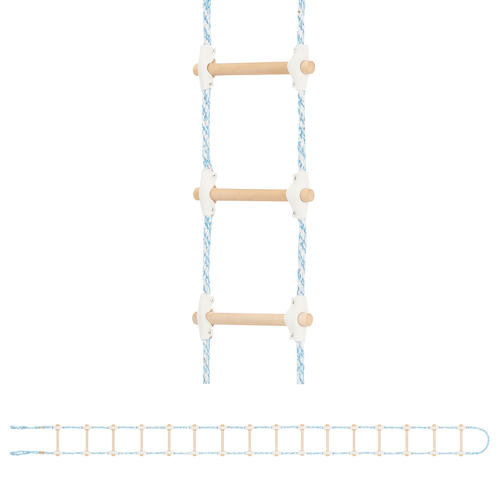 - Posebne ojačitve iz jutene vrvi – pritrditve so dodatno zavarovane z zaščitniki iz jutene vrvi, ki v dolžini približno 10 cm pritrdijo glavne vrvi lestve.
