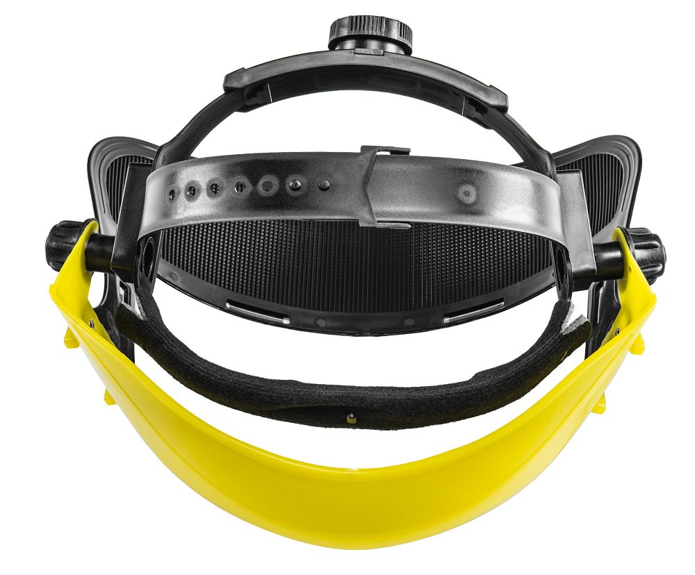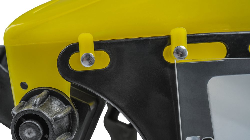 Prozorna PVC prevleka (30 × 9,5 cm) ščiti obraz, ne da bi pri tem omejevala vidno polje pri delu s kosilnico, s čimer izboljša nadzor in orientacijo na terenu. Spodnja mrežica doda zaščito in zmanjša stik z umazanijo, medtem ko zasnova izboljša pretok zraka in omejuje pregrevanje. Trak proti znoju preprečuje odtekanje znoja v obraz, ohranja oči bolj suhe ter izboljšuje vidljivost in koncentracijo.
