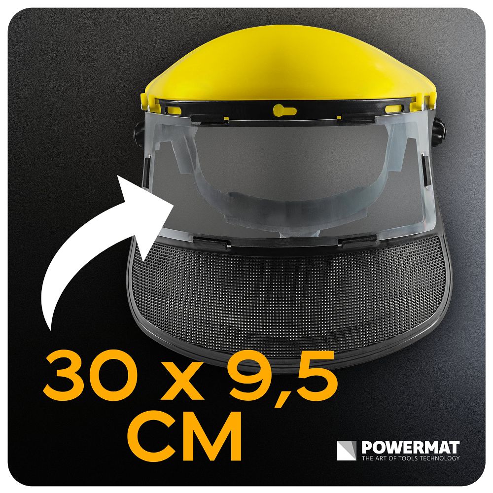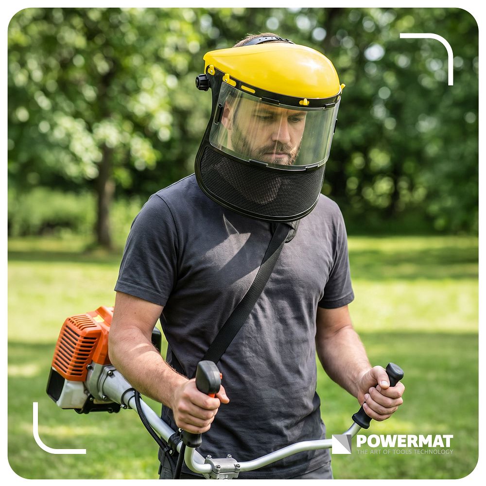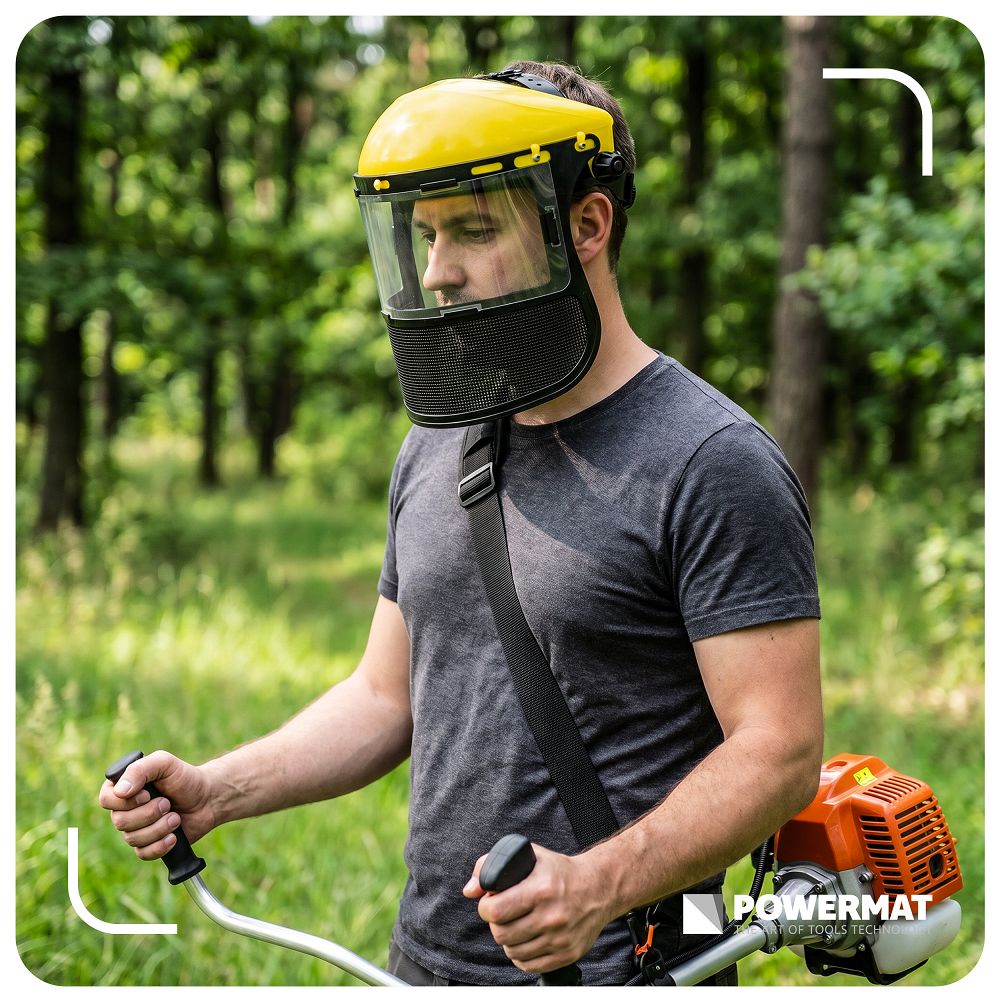 Zaščitna maska za košnjo | PM-MDK-PS1M bo odlično zaščitila vaš obraz pri košnji ali drugih vrtnih delih, kjer je potrebna zaščita. Zahvaljujoč nastavljivim trakovom in kotu naklona jo lahko prilagodite po potrebi, PVC prevleka in mrežica pa omejujeta stik z letečimi odpadki ter izboljšujeta vidljivost in udobje med delom. Obseg 50–60 cm in dodatni trak zagotavljata dobro prileganje glavi. Kot lahko prilagodite od 0 do 90° natančno glede na vaše trenutne potrebe.