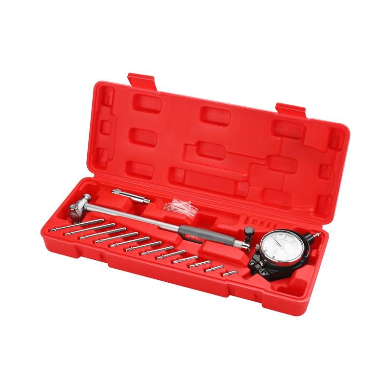 Zložljivi merilni instrument, 50–160 mm | KD3579 se uporablja za natančno merjenje notranjega premera lukenj, zlasti v cilindrih in ohišjih motorjev z notranjim zgorevanjem. Zložljivi model z razponom 50–160 mm in natančnostjo 0,01 mm je nepogrešljivo orodje v avtomehaničnih delavnicah, servisnih centrih za motorje in industrijskih obratih.